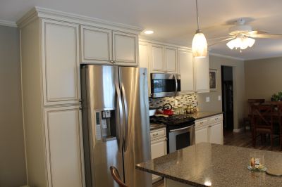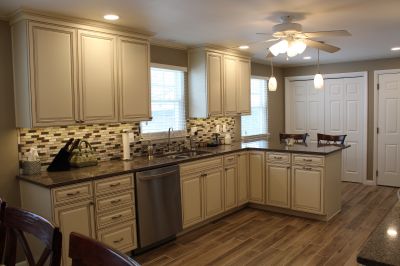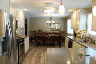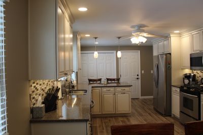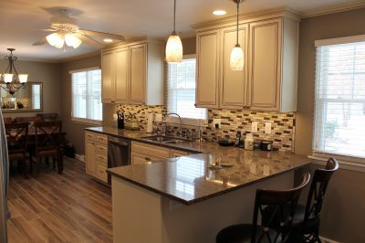 This client identified that they needed to remodel their kitchen in order to keep the dining area open and comfortable. We consulted with them to come up with a design that included bartop seating at the kitchen counter as well as a full dining set table and chairs. This project included a renovation that took place from the ground up. Browse the photos below and take note of the following: new flooring, backsplash design, cabinetry, hardware, and various lighting fixtures.
